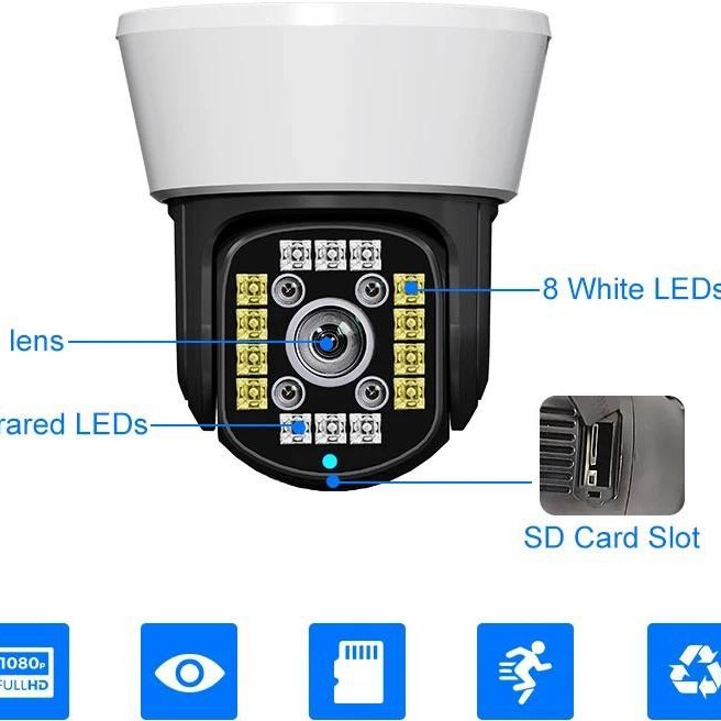 دوربین چرخشی سیم کارت خور V380 دارای قابلیت چرخش افقی تا 350 درجه و عمودی تا 90 درجه است و بهراحتی از طریق اپلیکیشن V380 قابل کنترل میباشد. لنز 2 مگاپیکسلی و وضوح تصویر Full HD، تصاویری شفاف و دقیق را حتی در شب ارائه میدهد.
