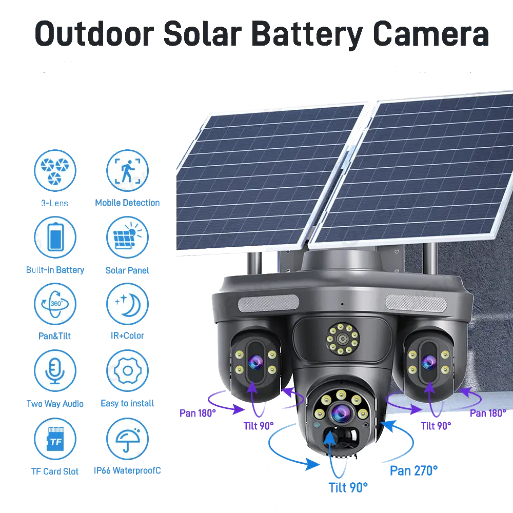 مینی اسپید دام سه لنز سیم کارتی پنل خورشیدی 3 مگاپیکسل اوکم پرو O-KAM Pro یکی از مدرن‌ترین دوربین‌های مداربسته بی‌سیم و سولار در بازار است که ترکیبی از چند قابلیت کلیدی را در خود جای داده است، کیفیت تصویر بالا، منبع تغذیه خورشیدی و اتصال سیم‌کارتی 4G. این ویژگی‌ها باعث می‌شوند که این دوربین مینی اسپید دام حتی در مناطقی که دسترسی به اینترنت وای‌ فای و برق شهری محدود است، همچنان امکان استفاده از دوربین و نظارت هوشمند فراهم باشد.