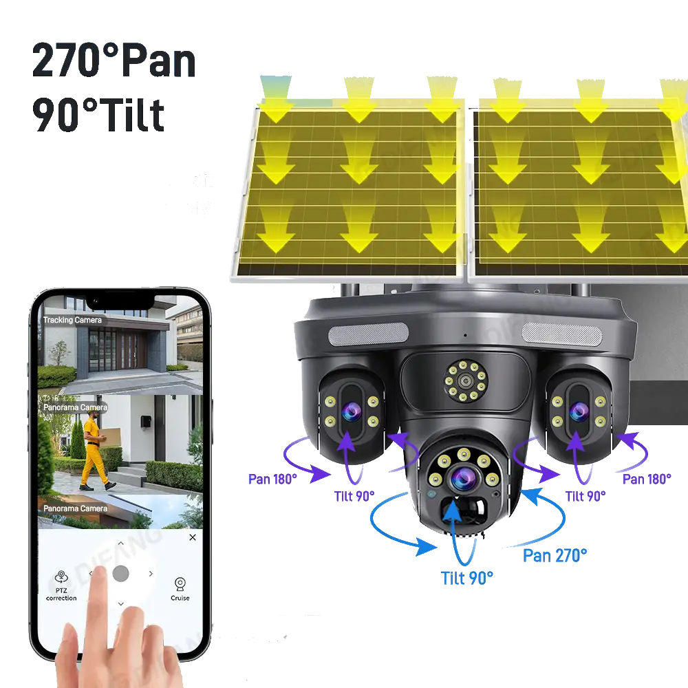 از طرف دیگر، وجود دو پنل خورشیدی تضمین می‌کند که دوربین همیشه شارژ باشد و نیاز به کابل‌کشی یا باتری‌های اضافه از بین نباشد.